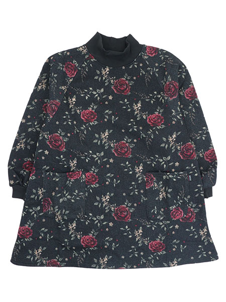 Aprirsi 杢ニット裏起毛 かぶり割烹着 バラ柄