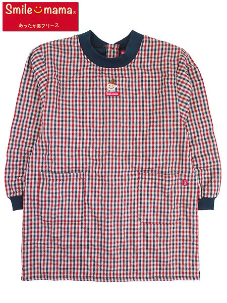 Smile mama(スマイルママ) 裏フリース割烹着 キルト 小さめチェック柄 背ボタン