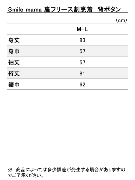 スマイルママのレディース裏フリースキルトカッポー背ボタンタイプ。