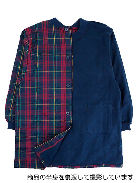 Smile mama(スマイルママ) 裏フリース割烹着 キルト チェック柄 背ボタン