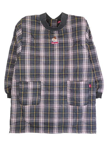 中綿入りでふっくら暖かい冬用、チェック柄のかっぽう着。