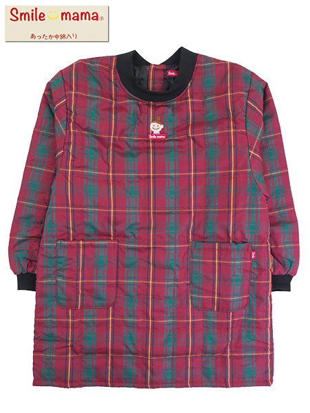 Smile mama(スマイルママ) 中わた入りキルト割烹着 チェック柄 背ボタン
