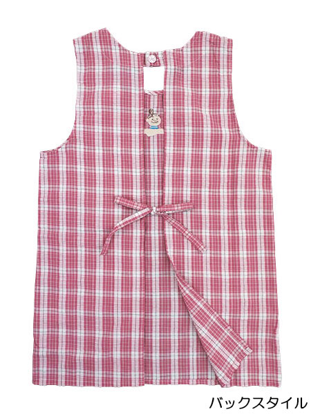 後ろは首元ワンボタン留め、ウエストひも調節となります。