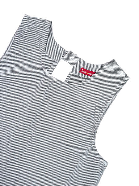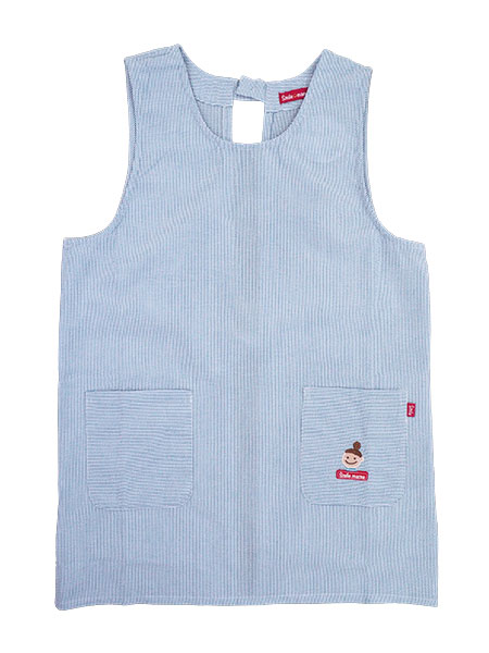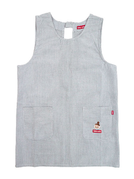 スマイルママのレディースラン型エプロン、細ストライプ柄。