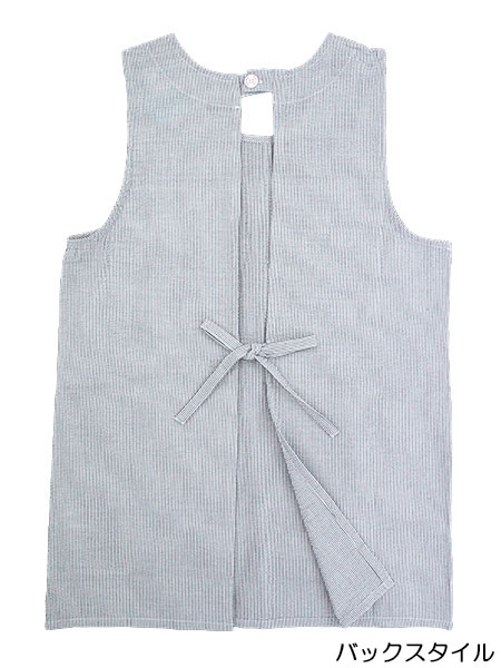 後ろは首元ワンボタン留め、ウエストひも調節となります。