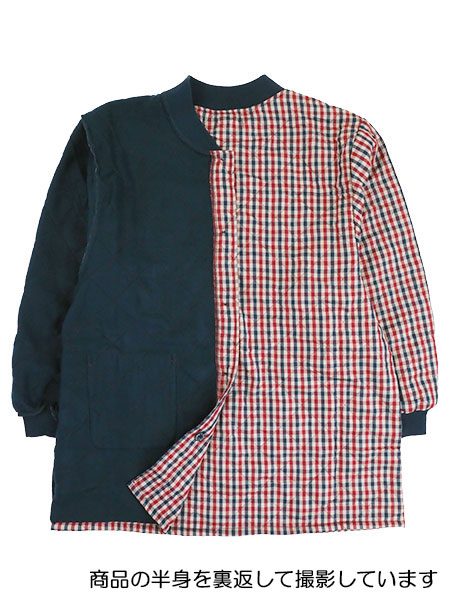 あったか裏フリースの冬用、シンプルなチェック柄の前あき割烹着。