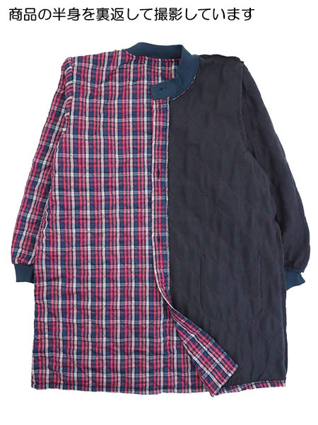 フリースの裏地付きであたたかいチェック柄のキッチンコート。