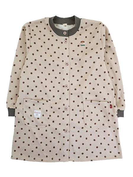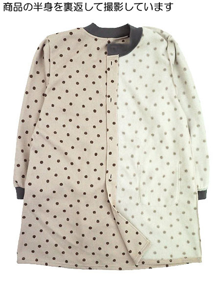 裏起毛であたたかい水玉柄ニット生地。着やすい前開きタイプ。