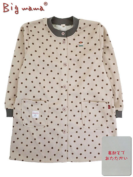 Big mama(ビッグママ) 裏起毛ニット前開きスモック 水玉柄