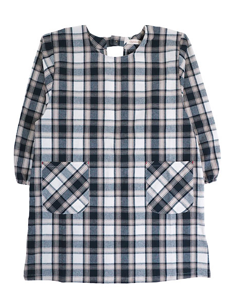 naturic 婦人割烹着 ロング丈 cotton100% チェック柄 後ろ開き