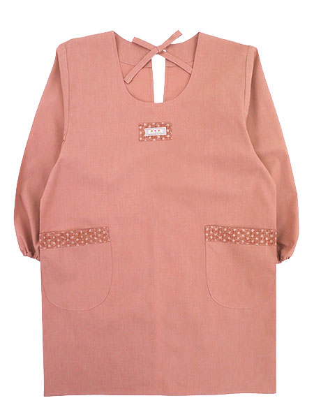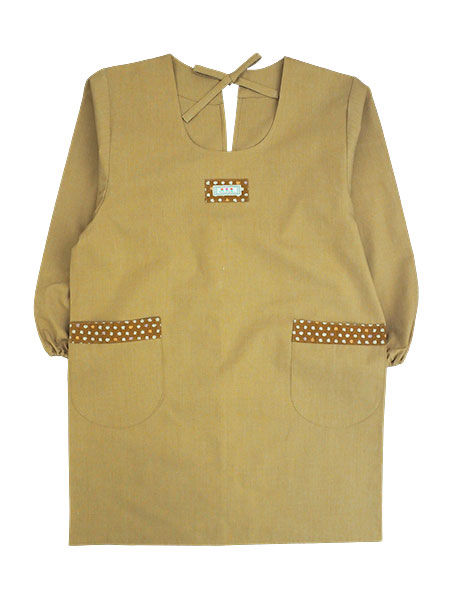 ポケットの口布と胸元のロゴ部分は水玉生地で切り替え。