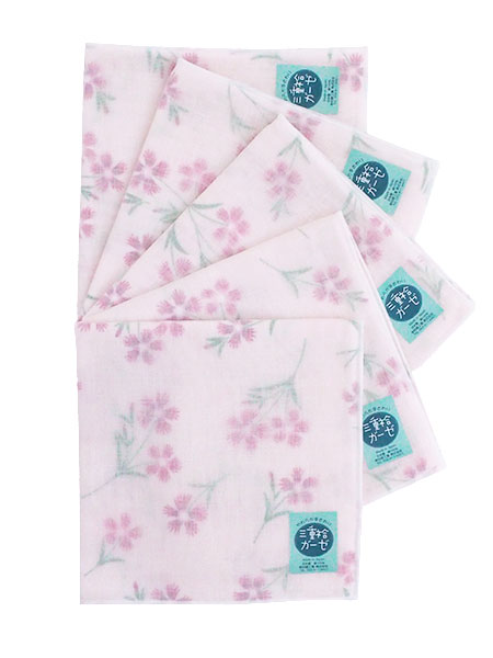 三重袷ガーゼ ガーゼハンカチ なでしこ 5枚組