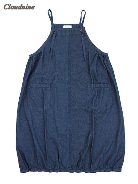 Cloudnine 婦人ワンピースエプロン 裾ゴム入りバルーン デニム