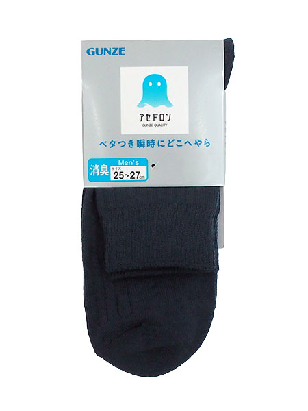 GUNZE(グンゼ)アセドロン、メンズカジュアルソックス、ミドル丈、太リブ無地、足底かのこ。