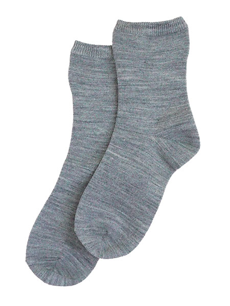ゴム糸を使用していないゆったり口ゴムの毛混の靴下。