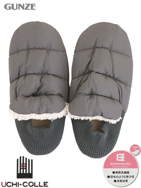 グンゼ ウチコレ 紳士ルームシューズ バブーシュタイプ 発熱素材 肌側ボア 無地