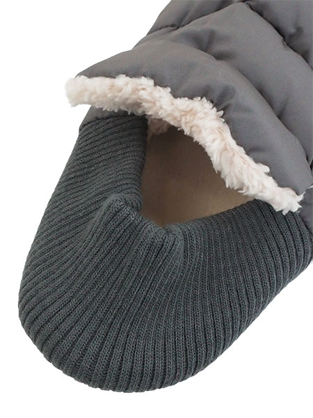 高い保温性を持つ発熱中綿が暖かさを長時間キープ、つま先まで肌側ボアたっぷり、かかとはリブ素材。