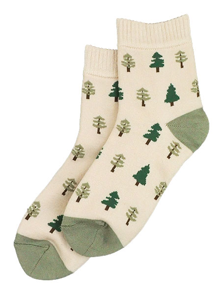 レディースのかかとカサカサ解消ソックス、靴下2重であったか、ツリー柄。