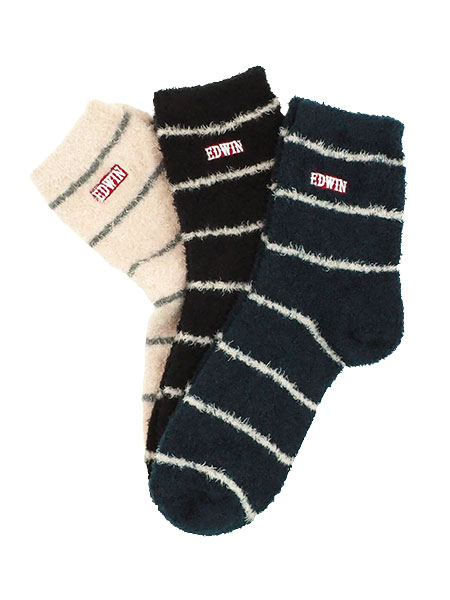 グンゼ EDWIN(エドウィン)婦人ソックス 3PACK 細ラインボーダー もこもこマシュマロタッチ