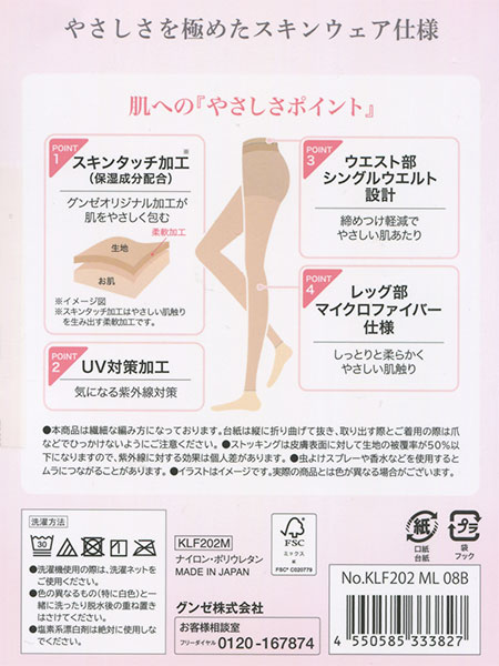 スキンタッチ加工(保湿成分配合)。UV対策加工。