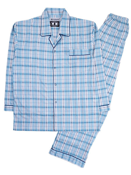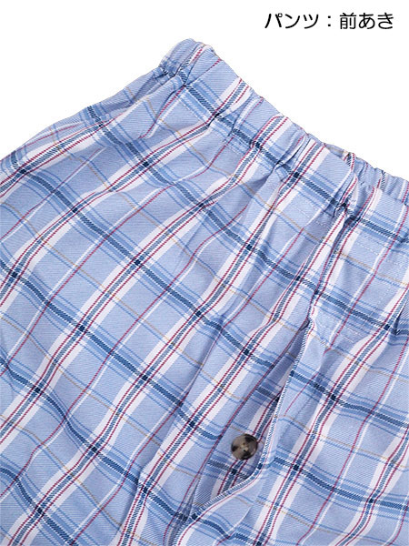 ロワンドのメンズ長袖パジャマ、綿100%天竺素材、チェック柄。