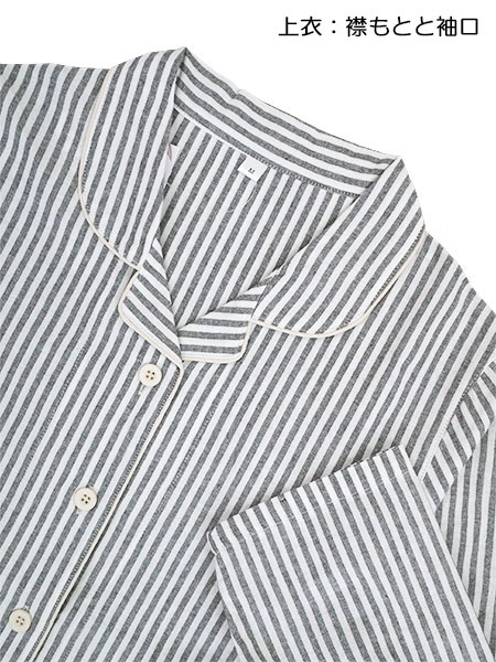 NERUGY 婦人長袖・長パンツパジャマ ストライプ柄 綿100% 先染めシーチング