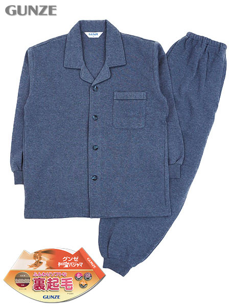 GUNZE(グンゼ)紳士長袖・長パンツパジャマ ふんわりソフトな裏起毛 無地
