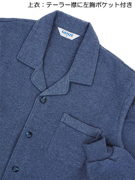 グンゼのメンズ長袖パジャマ、ふんわりソフトな裏起毛。