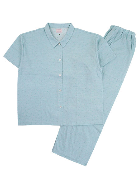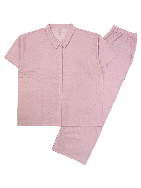 グンゼ キレイラボ Fitte 婦人5分袖・長パンツパジャマ ドット柄 綿100%天竺素材 襟付き