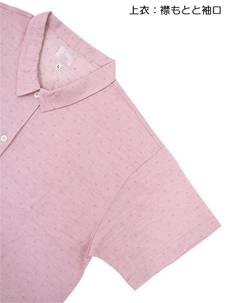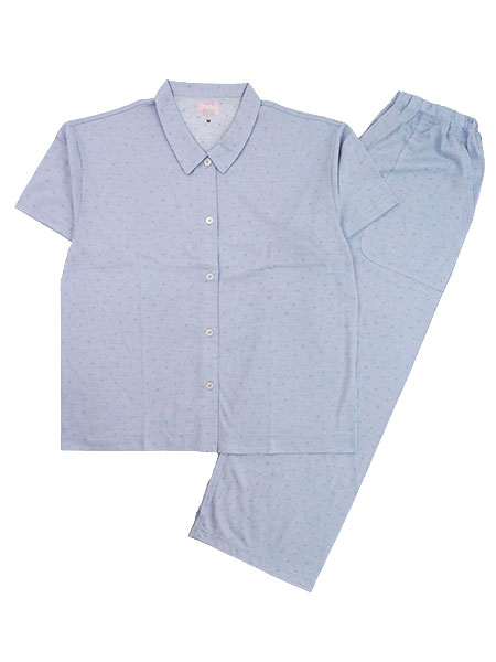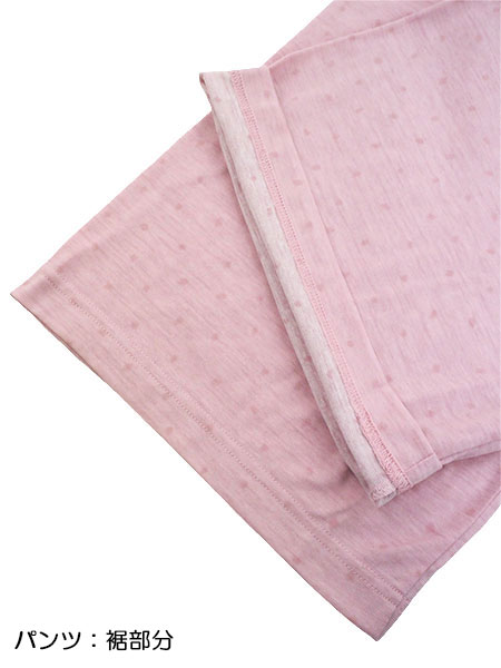 脇縫い目なし(肌あたり軽減)で快適な寝心地。ドット柄プリント。