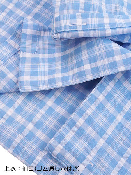 肌にやさしい綿100%、サラッと快適に過ごせる先染めサッカー素材を使用しています。
