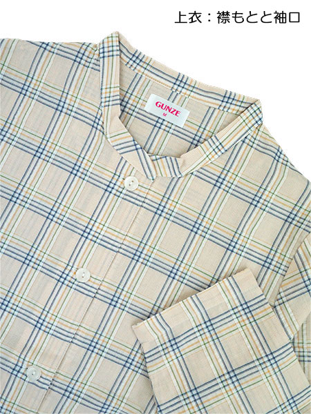 グンゼ 婦人長袖・長パンツパジャマ 吸汗速乾 着る珪藻土 チェック柄 サッカー素材