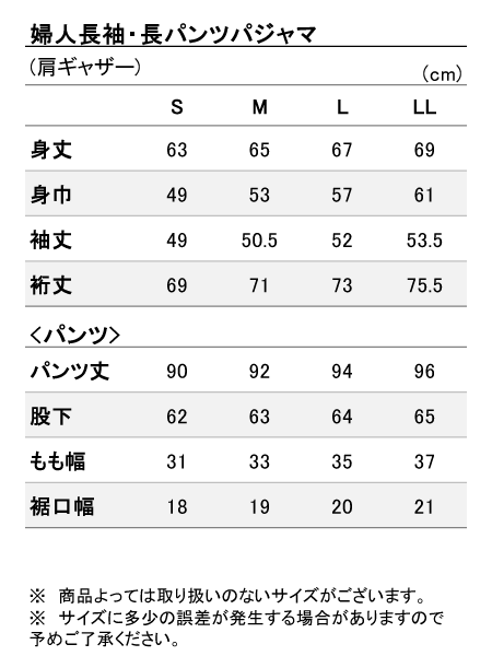 パンツ:裾ストレート、ポケットなし、ウエストゴム取り替え口あり。