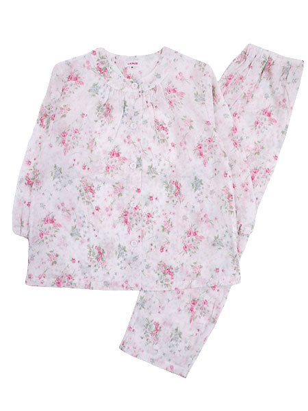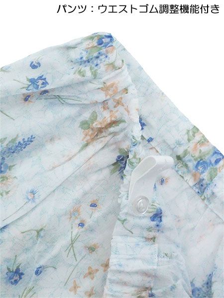 袖・足口ゴム通し穴付き。花柄プリント。