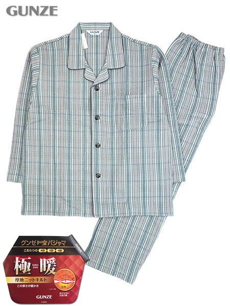 グンゼ 紳士長袖・長パンツパジャマ 極暖 肌側綿100% チェック柄 ウルトラバルキー