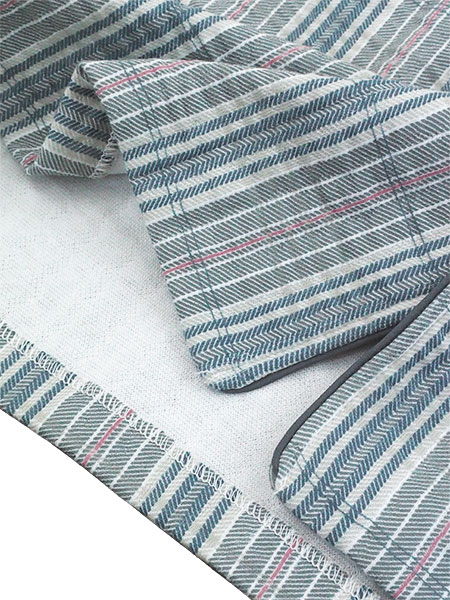 パンツ:前あき、ポケットなし、ウエストゴム取り替え口付き。