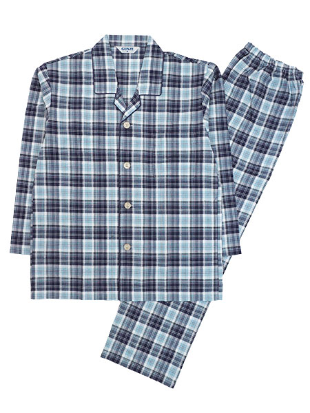 グンゼ クールマジック 紳士長袖・長パンツパジャマ 綿100%吸汗速乾加工 先染サッカー