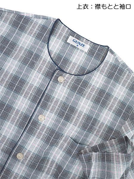 GUNZE、COOLMAGICのメンズパジャマ、サラッとさわやか吸汗速乾、チェック柄。