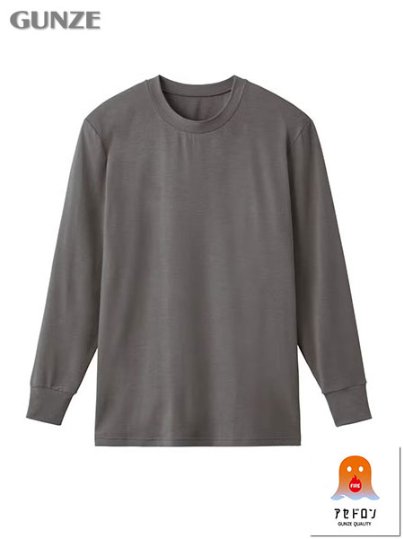 GUNZE(グンゼ)FIREアセドロン、メンズクルーネックロングスリーブシャツ(丸首)。