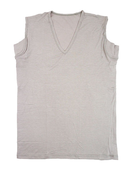 GUNZEのアセドロン、メンズのVネック、大きな汗取り付スリーブレスシャツ、鹿の子素材。