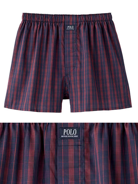 グンゼ、POLOのメンズトランクス、前あきタイプ、チェック柄。