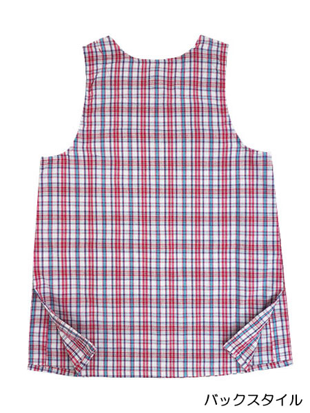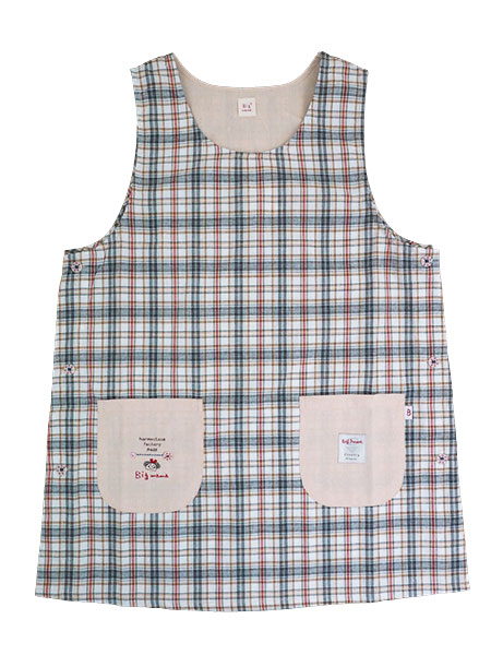 Big mama(ビッグママ) ラン型 かぶりエプロン サイドボタン チェック柄 タバード