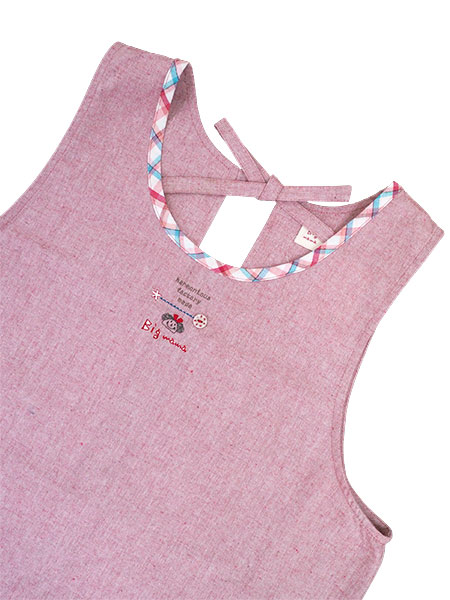 胸元にかわいいビッグママのワンポイント刺しゅう入りのエプロンです。