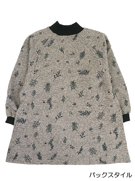 Smile mama(スマイルママ) あったか杢ニット裏起毛 かぶり割烹着 草花柄