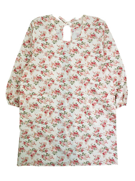 薄手の綿100%生地使用のおしゃれな花柄プリント割烹着です。