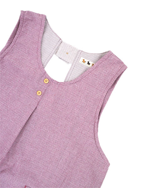 後ろは首元ワンボタン留め、ウエストひも調節となります。