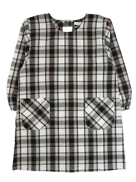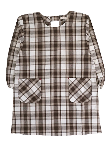 naturic 婦人割烹着 ロング丈 cotton100% チェック柄 後ろ開き