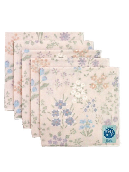 三重袷ガーゼ ガーゼハンカチ 野の花 5枚組
