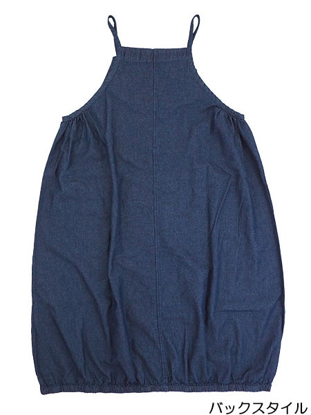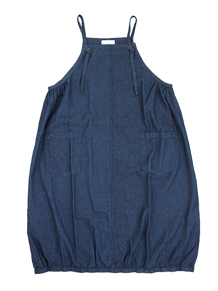 Cloudnine 婦人ワンピースエプロン 裾ゴム入りバルーン デニム