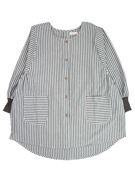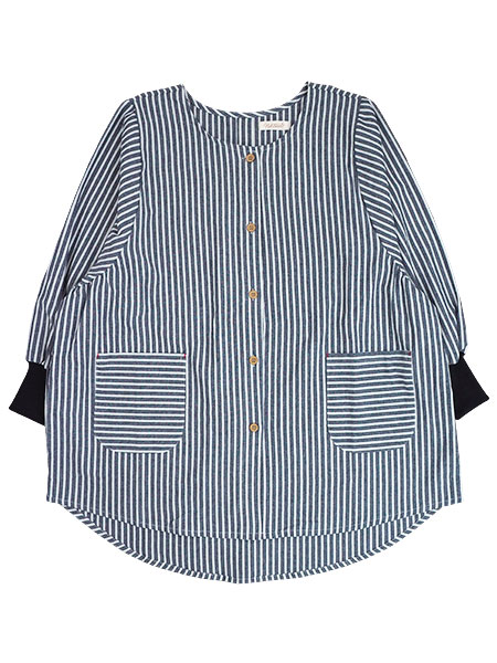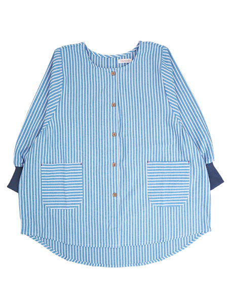 naturic 婦人タブリエ前あきスモック ストライプ柄 cotton100% 袖口リブ